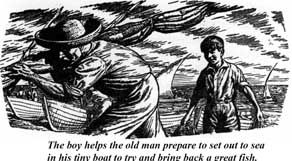 The fish puts up one last desperate fight, and then dies. The old man lashes it to the side of the boat and heads for shore. But all the way back, he has to fight the sharks that tear great strips from his trophy. By the time he gets back, there is little more than the head and skeleton left but that doesn’t matter. Sharks must live too, and the old man has what he wanted—proof that he caught the great fish.